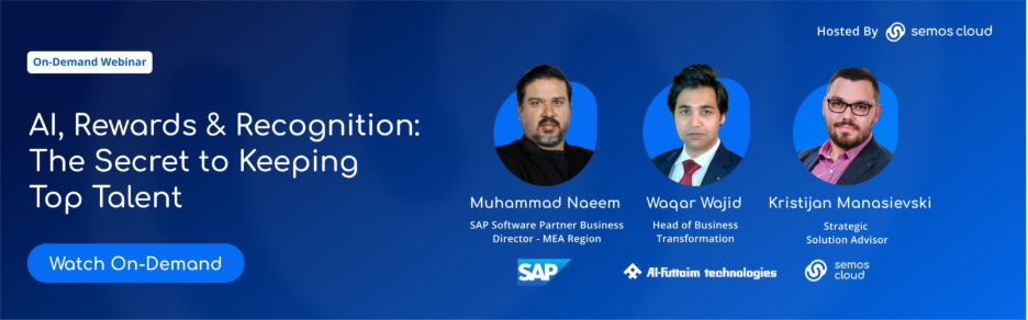 Artificial intelligence is no longer a distant concept in HR. It’s now embedded in how organizations recognize, reward, and retain their people. In this on-demand session, leaders from SAP, Semos Cloud, and Al-Futtaim Technologies explored how AI-powered integrations inside SAP SuccessFactors are transforming the employee experience across the Middle East and Africa. The discussion combined strategy, customer insights, and live product demonstrations that showed how AI is making recognition more meaningful, communication more human, and value more visible. See how SAP and Semos Cloud are using AI innovations to connect recognition, rewards, and transparency into one seamless employee experience. AI That Elevates Recognition and Connection Waqar Wajid, Head of Business Transformation at Al-Futtaim Technologies, shared how the company reimagined recognition through SAP SuccessFactors and Semos Cloud. Instead of using standalone tools, Al-Futtaim embedded recognition directly into the flow of work where employees already collaborate and engage daily. The result was a cultural shift powered by intelligent automation: more peer-to-peer recognition, stronger participation across teams, and measurable improvements in engagement. Transformation doesn’t come from adding new apps, ot comes from connecting recognition to everyday work and values. AI That Writes With Empathy Semos Cloud showcased two of its latest AI advancements: the Message Quality Indicator (MQI) and the Write-It-For-Me Assistant. Both tools use SAP’s Generative AI capabilities to help employees craft recognition messages that feel personal and authentic. The AI analyzes clarity, tone, and context, guiding users to express appreciation in ways that strengthen culture. Rather than automating gratitude, these features coach employees to communicate it better, proving that AI can amplify empathy instead of replacing it. Recognition in the Flow of Work: SAP Joule Integration One of the most anticipated parts of the webinar was the demonstration of SAP Joule, SAP’s generative AI assistant. Semos Cloud became the first SAP Spotlight Partner to integrate recognition directly into Joule. Employees can recognize colleagues, link recognitions to company values, and share appreciation all within their SAP workspace, with no additional apps or logins. This represents a milestone in how AI bridges experience and execution, bringing recognition into the natural flow of daily work. Total Rewards Hub: Making Employee Value Visible Beyond recognition, the session highlighted how AI and integration are helping HR leaders bring total rewards transparency to life. The Semos Cloud Total Rewards Hub, built on SAP Business Technology Platform (BTP), allows employees to see every component of their compensation and benefits in a single, interactive experience. AI personalization and communication tools help HR teams move beyond static dashboards, turning complex data into clear, engaging stories that employees understand and trust. As our Solution Advisor Kristijan Manasievski said, Visibility builds connection. When employees can see their total value, it changes how they feel about work. Total Rewards Co-Pilot: Conversational AI for HR Data The Total Rewards Co-Pilot represents the next leap in AI-driven transparency. Using retrieval-augmented AI, the Co-Pilot enables employees to ask natural questions like “What’s my annual bonus projection?” or “Am I eligible for a new benefit?” and receive accurate, plain-language responses in real time. This AI assistant doesn’t just surface data; it interprets it, transforming HR information into personalized insights that make work simpler and more human. Human-Centered AI: SAP’s Closing Message Muhammad Naeem, SAP Software Partner Business Director for the MEA Region, wrapped up the session by reinforcing the purpose behind these innovations. Technology, he said, should serve as an enabler of human connection. Through SAP’s collaboration with Semos Cloud, AI is now enhancing trust, visibility, and inclusion across organizations, helping leaders design employee experiences that are both intelligent and empathetic. A Note of Gratitude We extend our thanks to Waqar Wajid, Muhammad Naeem, and the SAP MENA team for joining us in this discussion and for their continued collaboration throughout the MEA North webinar series. Their insights and examples reminded us that innovation matters most when it helps people feel recognized, connected, and valued. We’re proud to continue this partnership as we explore the next chapter of human-centered, AI-powered employee experience together. Related posts The Complete Guide to Total Rewards Management for Global Enterprises read more GCC Total Rewards Segmentation & AI: Insights from Reward Leaders read more Effective Ways to Recognize Your Employees: A Comprehensive Guide read more