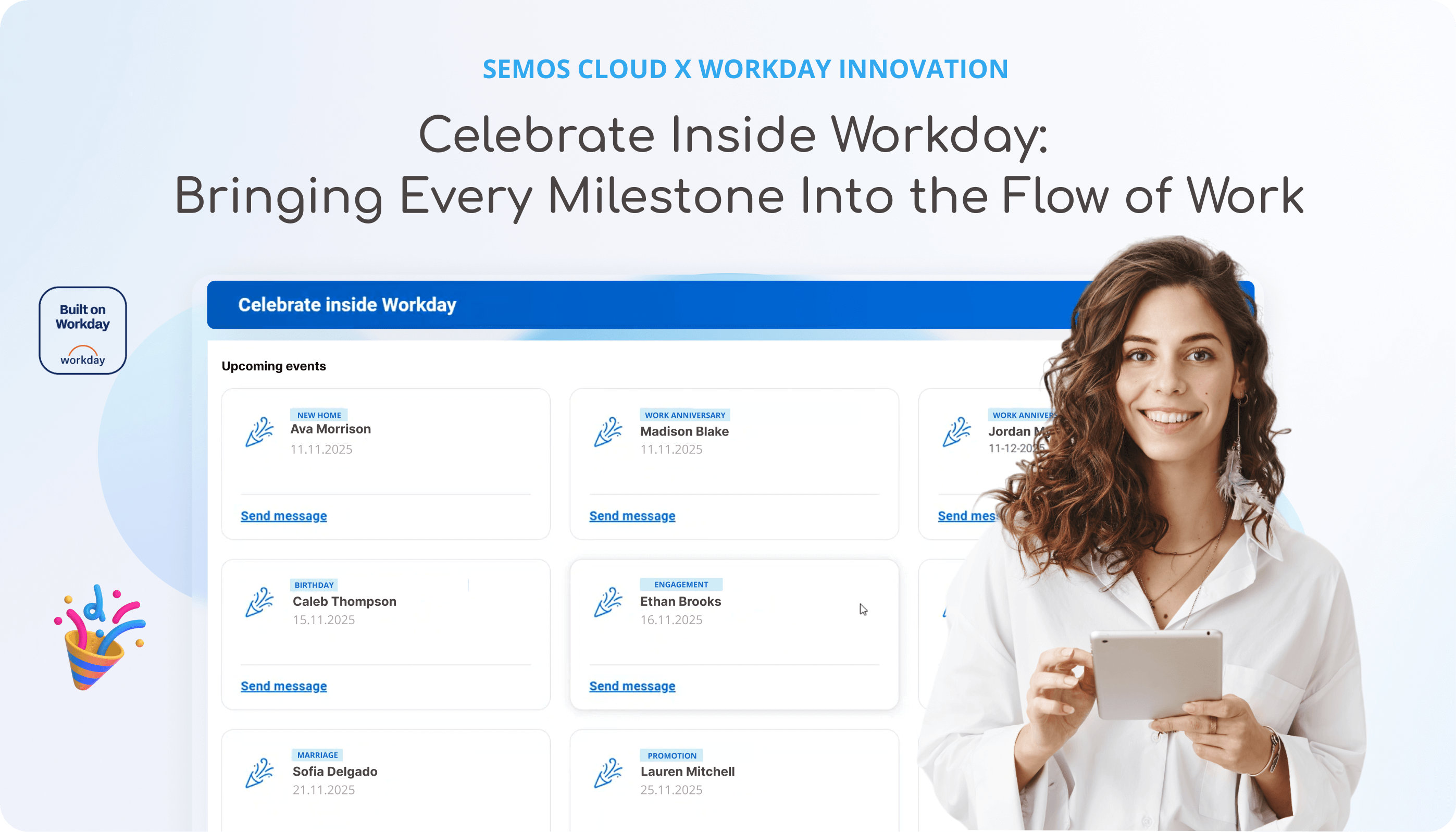 Product Innovation Center Learn about the latest product innovations Introducing Celebrate Inside Workday: A Built on Workday App for Employee Milestone Celebrations read more Semos Cloud Q4 2025 Product Innovation: Building More Flexible Recognition and Rewards Experiences read more Semos Cloud Q3 2025 Product Innovation: Removing Friction from Recognition, Feedback, and Rewards read more Redefining Total Rewards: From Fragmented Data to Strategic Advantage read more Semos Cloud H1 2025 Product Innovation: Powering Meaningful Employee Experiences read more Completing the Big Three in the HCM World: Semos Cloud Now Natively Integrated with SAP SuccessFactors, Oracle, and Workday read more Semos Cloud Named Workday Innovation Partner, Launches Three Integrated Solutions to Elevate Employee Experience read more Leading with Insight: AI-Driven Feedback Analytics for Managers read more Recognized for Business Value and Reliability: Semos Cloud Achieves SAP Spotlight+ Status read more From Manager to Super Manager: Semos.ai Introduces AI Agents for Leadership Excellence read more Semos Cloud Joins EU-US Data Privacy Framework: Strengthening Data Protection and Compliance read more Transforming Feedback with AI: Clear, Actionable, and Bias-Free Solution read more Introducing the Next Innovation Chapter at Semos Cloud: Connecting Culture, People and Skills read more People & Culture Intelligence: 30+ Use Cases and Capabilities for Business AI read more One Size Fits All: Semos Cloud Solves Cross-Industry, Unit & Location Nomination Challenges and More Updates… read more Semos Cloud Revolutionizes Recognition with AI-powered Fraud Detection, NFTs, and more… read more Be the first to experience our latest innovations Get Ahead Now