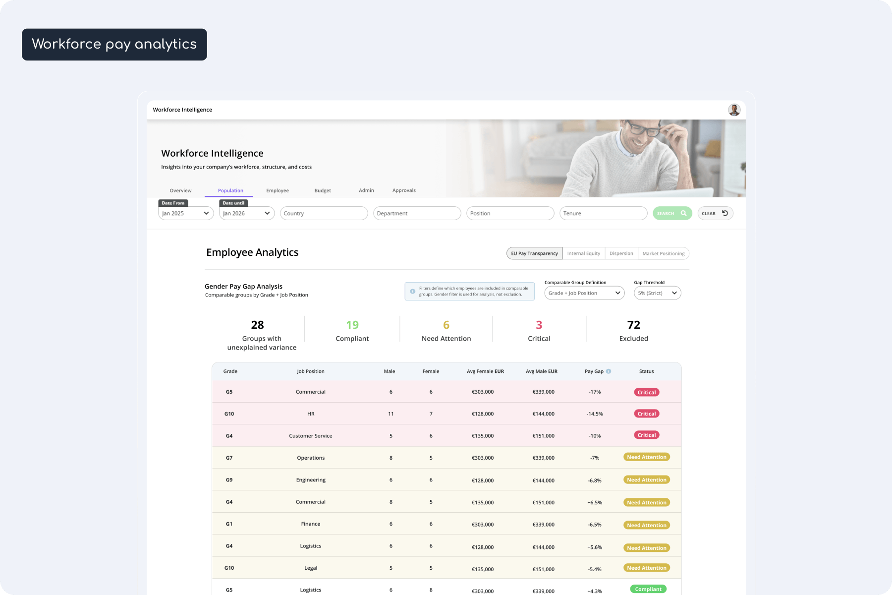 Pay transparency has moved from policy aspiration to legal and organizational reality. The EU Pay Transparency Directive reaches its transposition deadline in June 2026. Fourteen US states already have active pay transparency laws in place. Employees are far more aware of their rights than most HR teams expect. In March 2026, we hosted Pay Transparency Readiness: What Your Organization Needs Before the Deadlines Hit, a panel bringing together Sophie Janke, implementation consultant at Gradar; Jim Bagley, Compensation Strategies Manager at Deloitte; and Luca Valerii, independent Total Rewards consultant and former HR Director at Microsoft EMEA. Their read: organizations that had already started the journey still weren’t fully ready. We took that same conversation to Prague, where HR leaders at an SAP SuccessFactors community event were asking not what the directive means, but what they need to do about it. That question shaped our Q1 2026 work on the Total Rewards Hub. As a People & Culture Intelligence platform embedded in enterprise HR ecosystems, Semos Cloud’s role is to connect workforce signals to the decisions that matter. This quarter, that meant extending the Total Rewards Hub with new pay equity and pay transparency capabilities designed to protect the business, equip managers for the conversation, and make the employee experience around total rewards clearer and more meaningful. What We Delivered to Operationalize Pay Transparency Identify and close pay gaps through a governed, auditable process. Regression-based analysis, remediation proposals with business rule safeguards, structured approval workflows, and on-demand pay transparency statements. Model the full cost of remediation before any commitment is made. Scenario modeling and phased remediation so equity decisions are made with full cost clarity. Walk into every pay conversation with the context you need. A dedicated team view and an AI compensation assistant that surfaces insights and prepares managers before the conversation starts. See whether your total rewards communication is actually working. Engagement analytics on portal activity, paired with a refreshed overview experience that drives higher engagement from the first click. Every Compensation Decision, Documented and Defensible Your organization already has the data, and most tools will help you analyze it. What they won’t give you is the structured path from that data to compliant, documented, auditable action. Sophie Janke put it plainly in our webinar: introducing pay transparency without a structured operating model is like pulling back the curtain before the actors are on stage. To address this, we deepened the Total Rewards Hub’s admin intelligence layer, integrated with SAP SuccessFactors, Workday, Oracle HCM, connecting existing compensation data to the analytical, workflow, and communication capabilities that compliance now demands. It works across four areas: Regression-based pay gap analysis The analysis separates your raw pay gap into explained and unexplained components, configurable by job level, job family, tenure, performance rating, or any available HCM attribute. Results are automatically categorized as Compliant, Needs Attention, or Critical. When a regulator or auditor asks, you have a statistically grounded analysis with documented methodology ready. Drill-down to individual employee level Individual employee records are accessible within the analysis, showing full pay detail and how each person sits relative to peers and internal bands. You can see exactly who’s affected and what needs to change, without cross-referencing across spreadsheets and HCM exports that most pay equity analyses still rely on. Equity remediation with business rule safeguards The directive doesn’t just ask organizations to report pay gaps, it requires them to close them. Once gaps are identified, the system generates remediation proposals with salary bands, grade structure, compression rules, and budget constraints already applied. Administrators can model scenarios and phase remediation across budget cycles, with full cost visibility before anything is committed, so remediation doesn’t create budget surprises. Every adjustment routes through a configurable approval workflow with a full audit trail. Structured approval workflows and pay transparency statements Every employee has the right to know where their pay sits, what criteria set it, and how they compare to peers. Individual pay transparency statements make that deliverable at scale, generated on demand and delivered directly to your employees, covering current salary, peer range positioning, and regulatory compliance confirmation, without a manual HR ticket process. The answer to the question employees have always had is finally there: where do I stand, how does my pay compare, and how was it decided. For comp teams, these capabilities change the day-to-day reality of running pay equity. No more Excel analysis, manual approval chains, or separate remediation spreadsheets. Everything your team needs sits inside the same platform you already use for total rewards. Giving Managers the Context to Lead the Conversation The analysis and the audit trail protect the organization. But pay transparency doesn’t fail at the policy level, it fails when it reaches the manager who has no data, no context, and no support for the conversation they’re suddenly expected to have. In fact, 37% of U.S. organizations say manager inability to explain compensation programs is their biggest hurdle in implementing pay transparency. Luca Valerii noted in our webinar that organizations are so focused on calculations and job architecture that they sometimes forget equipping managers is one of the most important pieces of the work. Jim Bagley framed the failure mode plainly: the last thing you want is a manager saying “I don’t know, comp made me do it.” This quarter, we introduced two connected capabilities designed